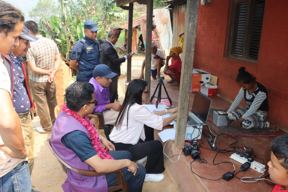 कार्यालयमा आएर नागरिता लिन असहज नागरिलाई घरमै गई प्र.जि.अ.बाट नागरिकता प्रदान र राष्ट्रिय परिचयपत्रको विवरण दर्ता गरिदै