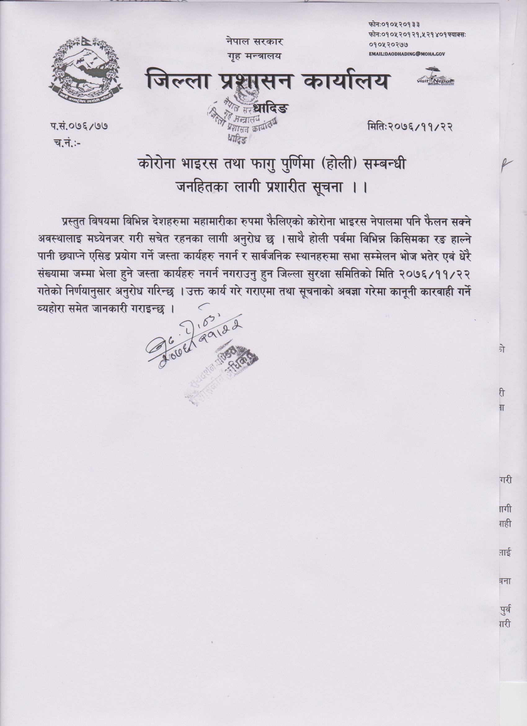 जिल्ला प्रशासन कार्यालय धादिङको जरुरी सूचना ।