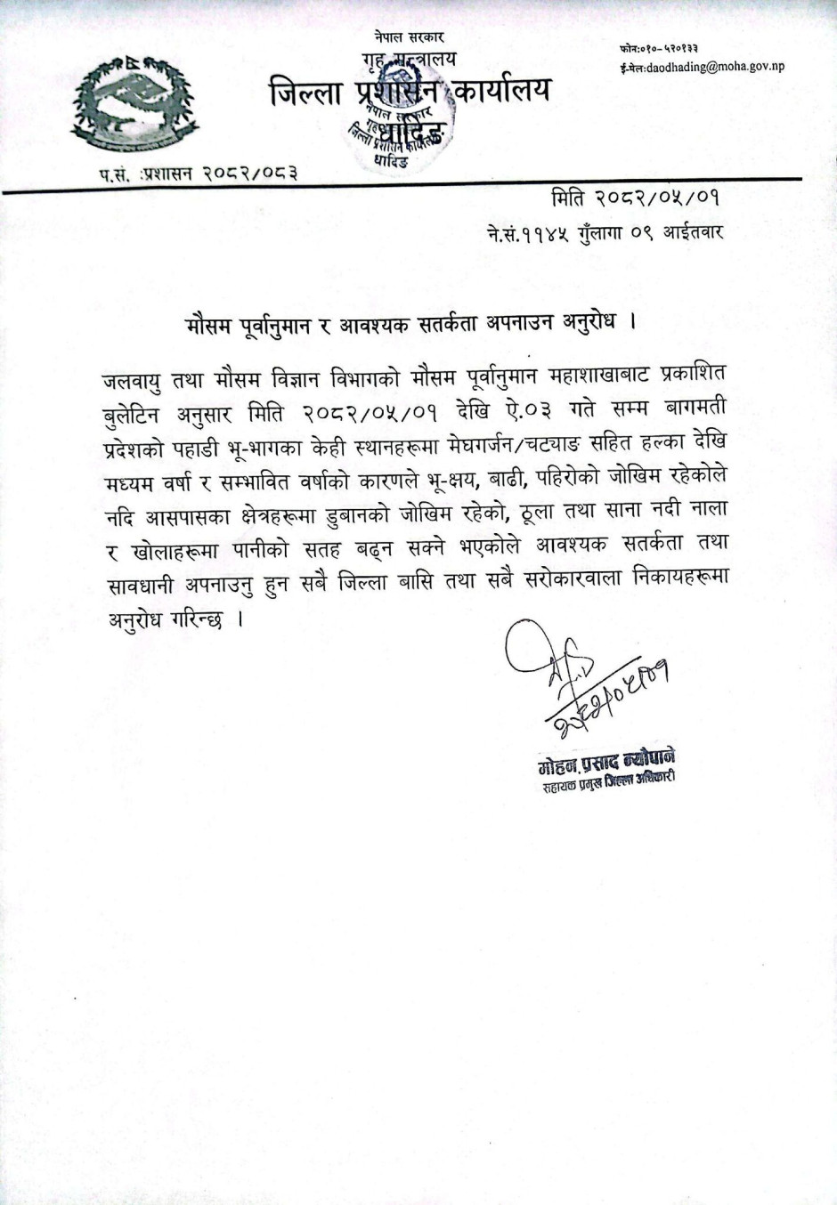 जिल्ला प्रशासन कार्यालय, धादिङद्धारा जनहितमा जारी सूचना ।