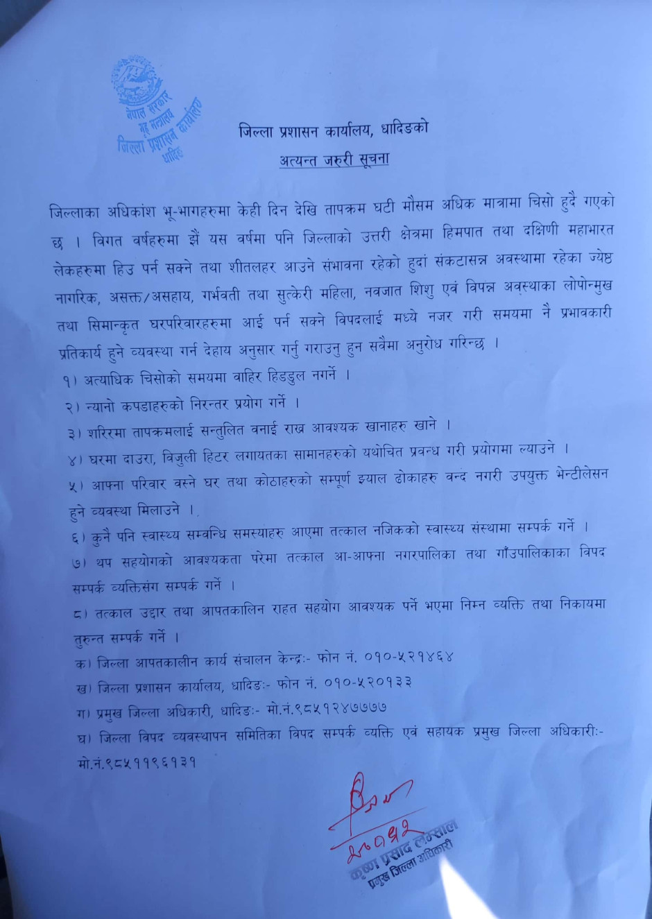 जिल्ला प्रशासन कार्यालय, धादिङद्धारा जनहितमा जारी सूचना ।