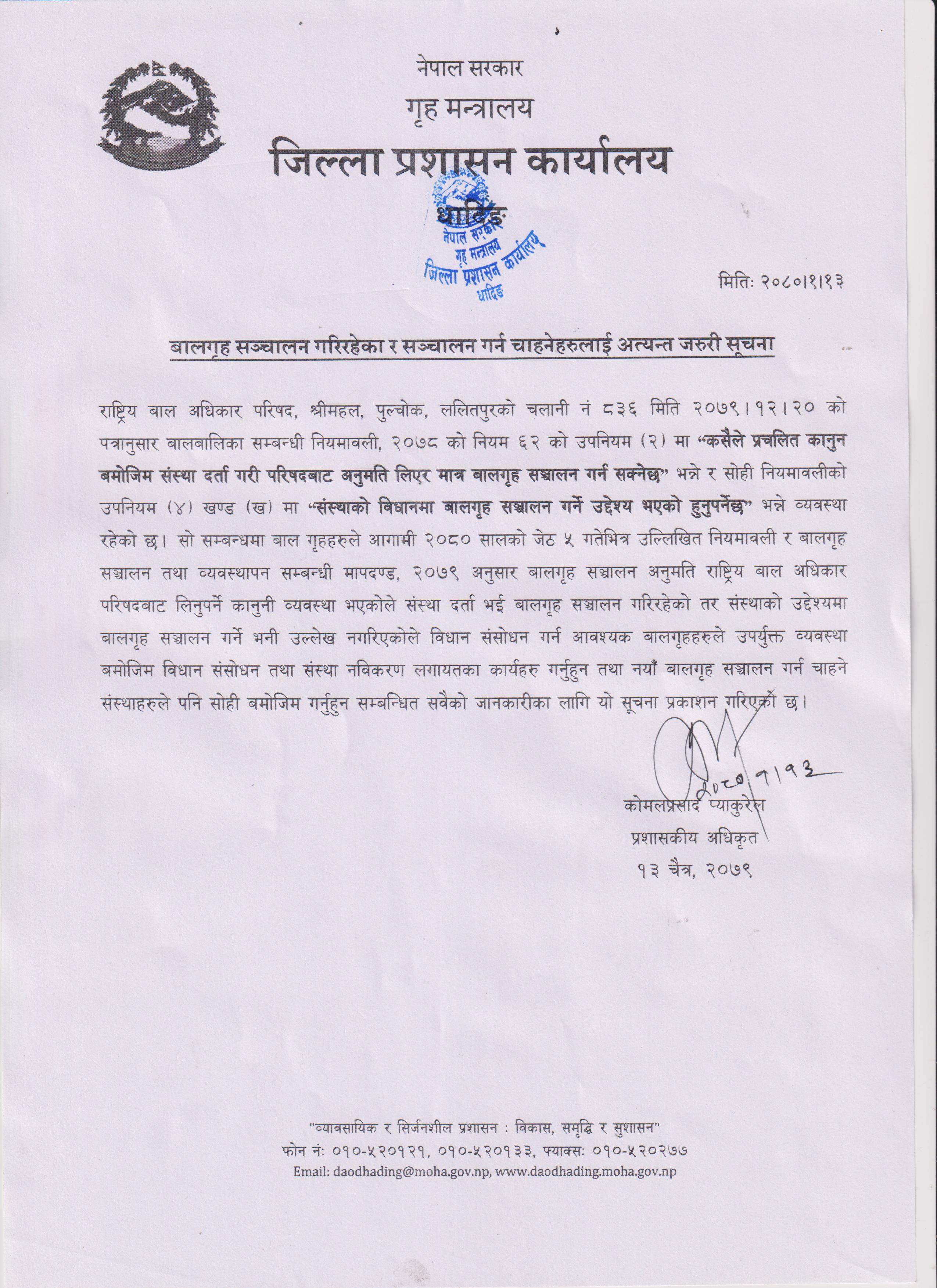 बालगृह सञ्चालन गरिरहेका र सञ्चालन गर्न चाहनेहरुलाई अत्यन्त जरुरी सूचना