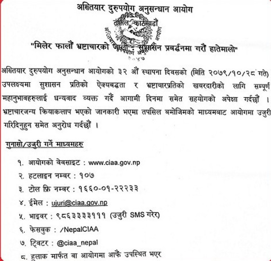 भष्टाचार विरुद्धको सन्देशमुलक सूचना