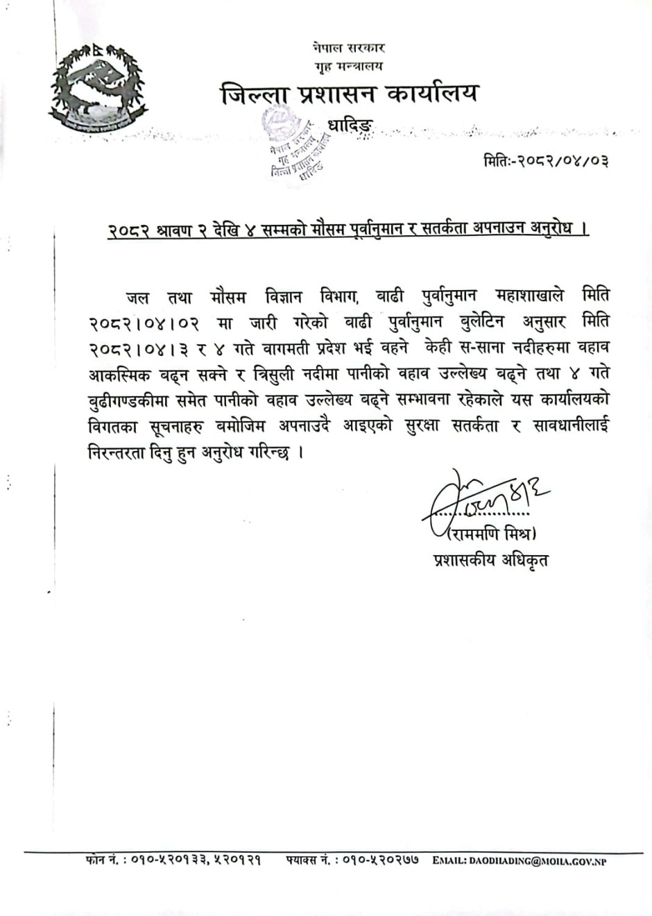 जिल्ला प्रशासन कार्यालय, धादिङद्धारा जनहितमा जारी सूचना ।