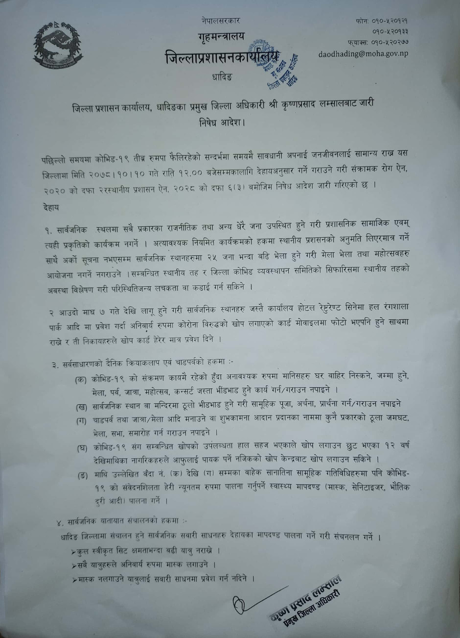 जिल्ला प्रशासन कार्यालय, धादिङद्धारा जनहितमा जारी सूचना ।