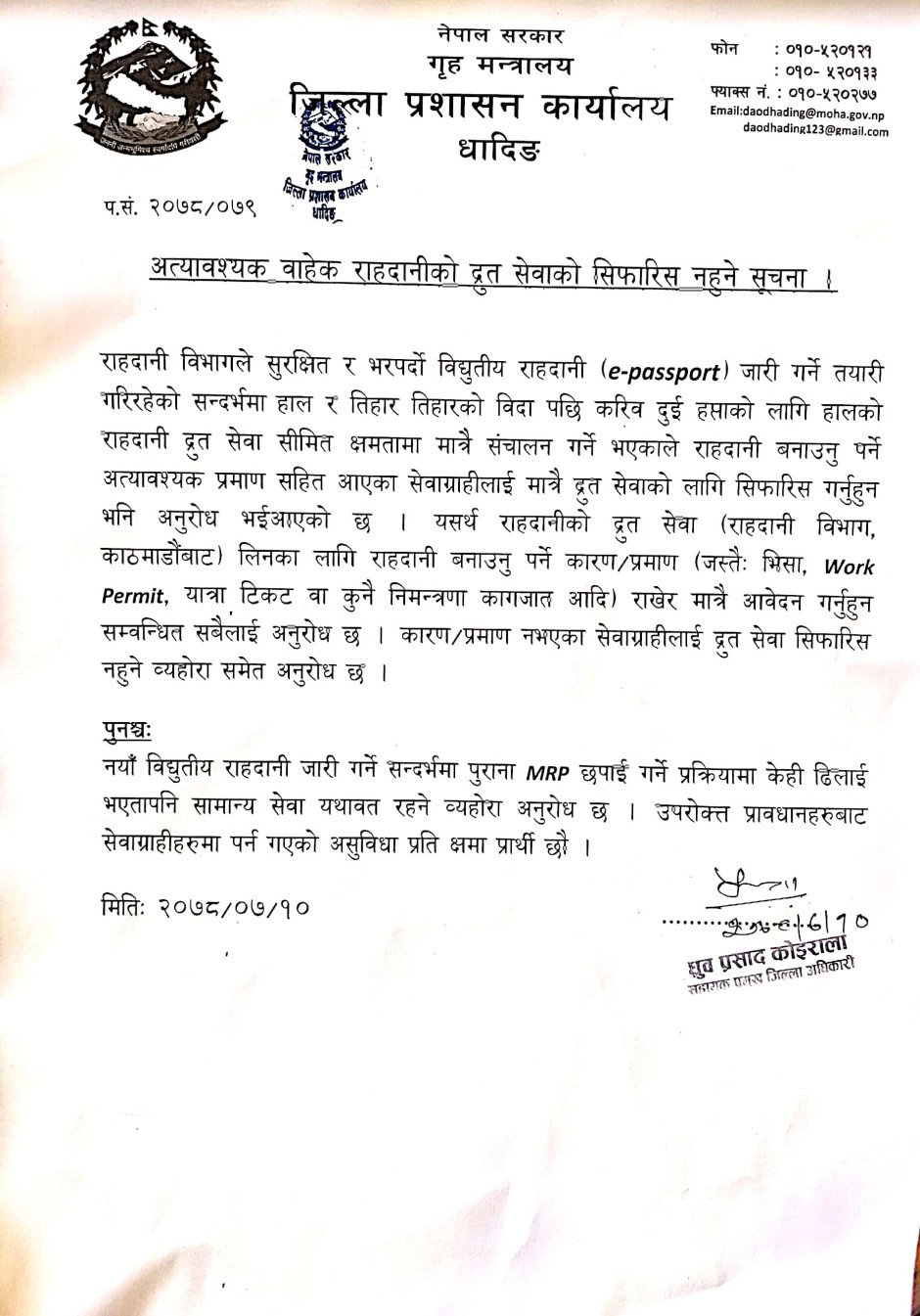जिल्ला प्रशासन कार्यालय, धादिङद्धारा जनहितमा जारी सूचना ।