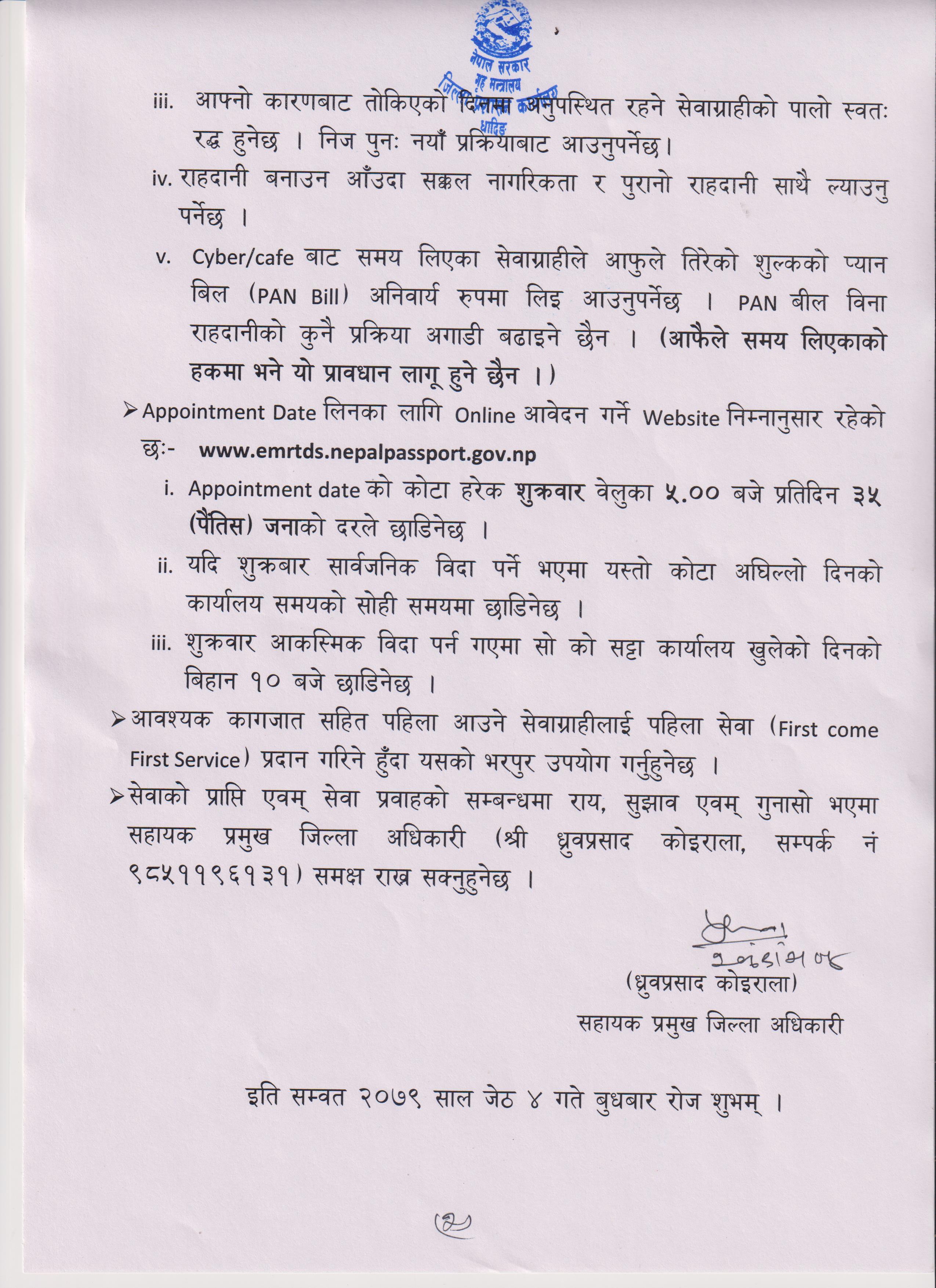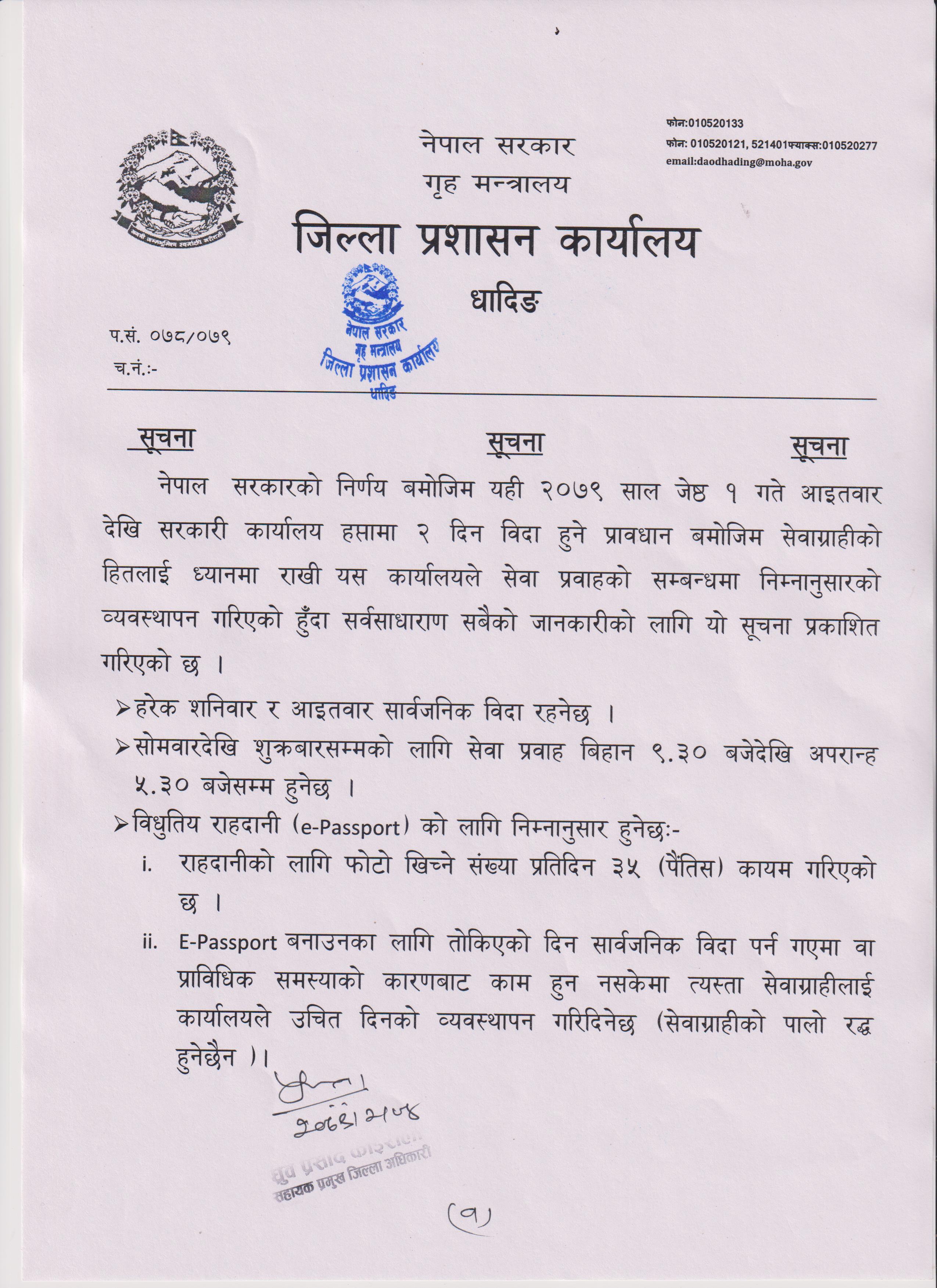 जिल्ला प्रशासन कार्यालय, धादिङद्धारा जनहितमा जारी सूचना ।