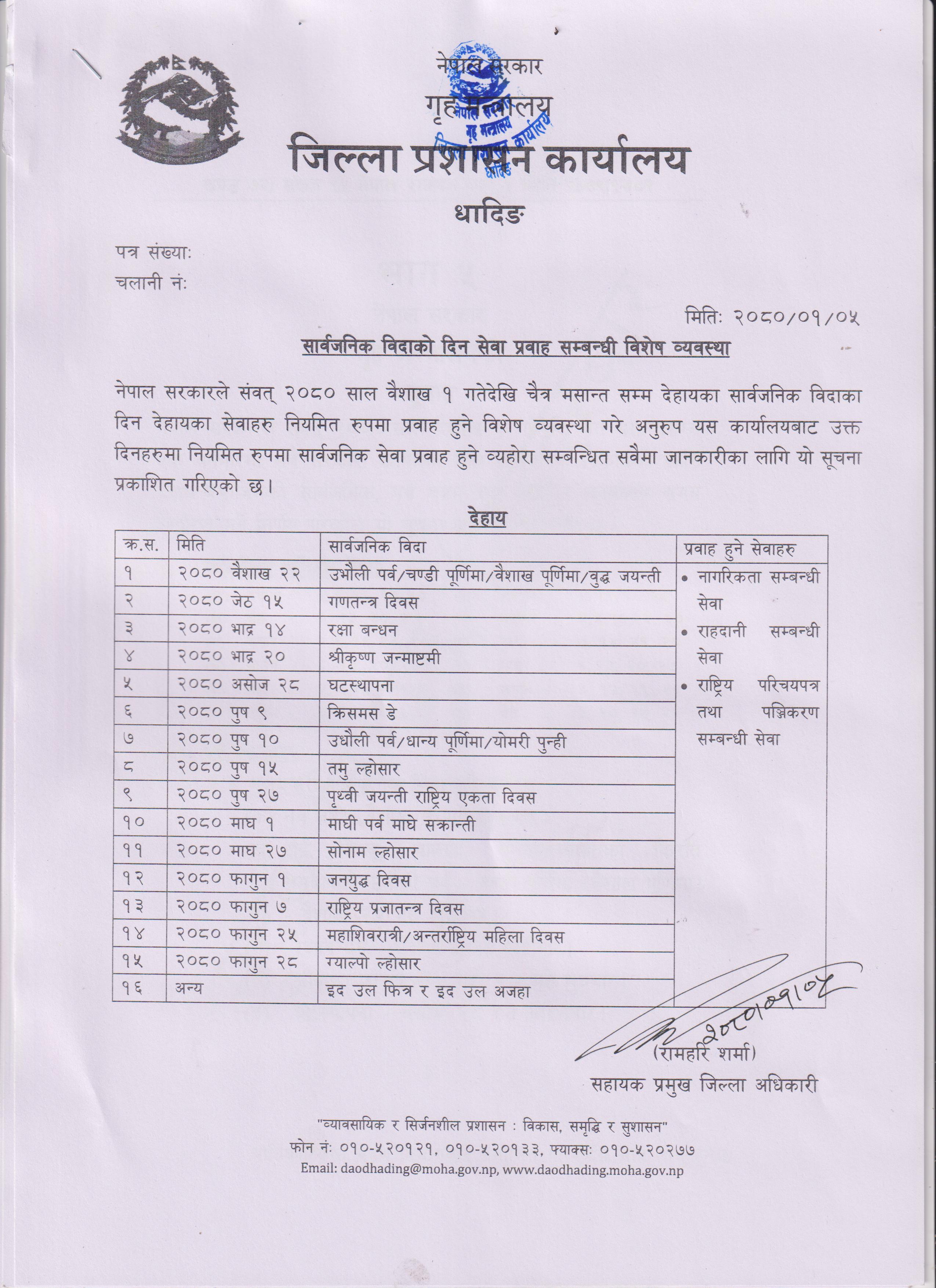 सार्वजनिक विदाको दिन सेवा प्रवाह सम्वन्धी विशेष व्यवस्था