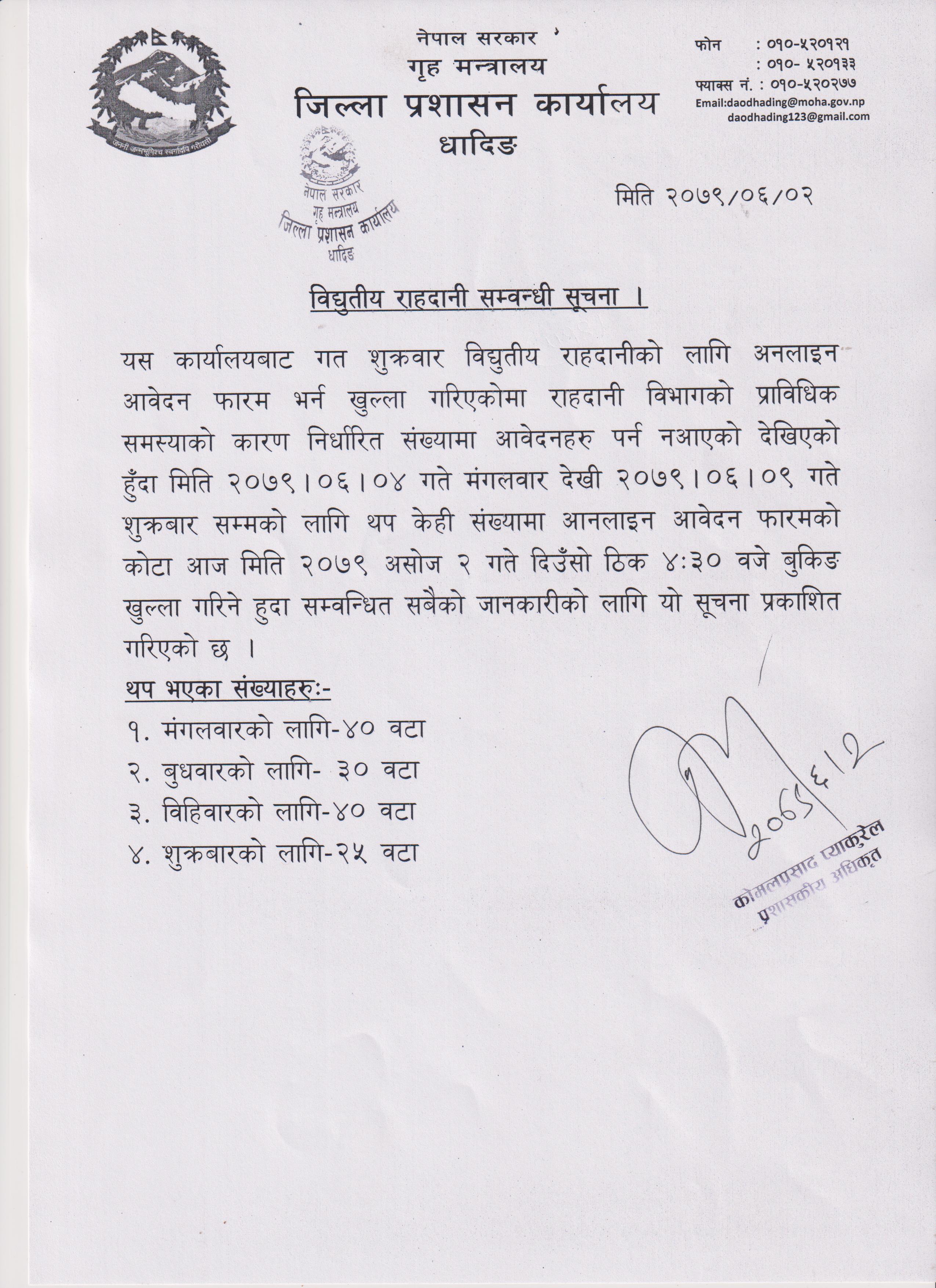 जिल्ला प्रशासन कार्यालय, धादिङद्धारा जनहितमा जारी सूचना ।
